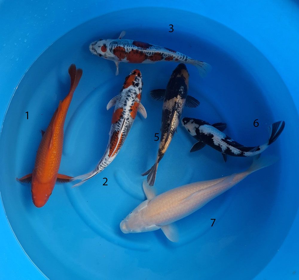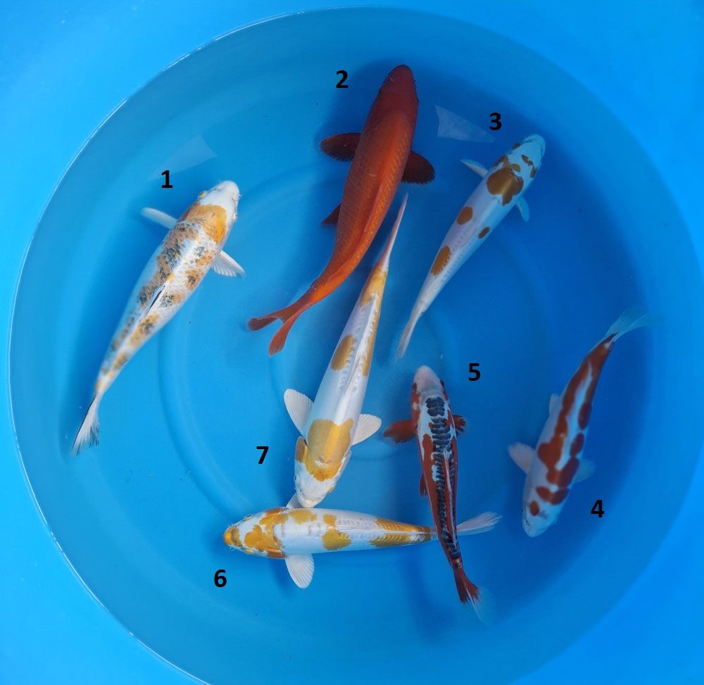 FOTO 53 - 1 KI KUJAKU - 2 BENIGOI - 3 HARIWAKE- 4 KIKUSUI - 5 SHUSUI - 6 HARIWAKE - 7 HARIWAKE - NISAI - 30/35 CM