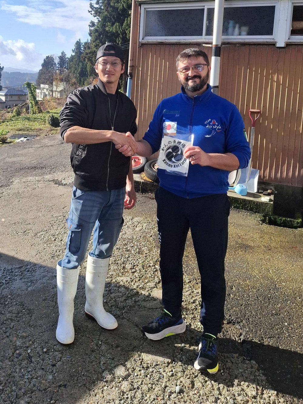Immortaliamo questo momento con la tradizionale foto di rito insieme all'allevatore e vi mandiamo un saluto caloroso direttamente dal Giappone.