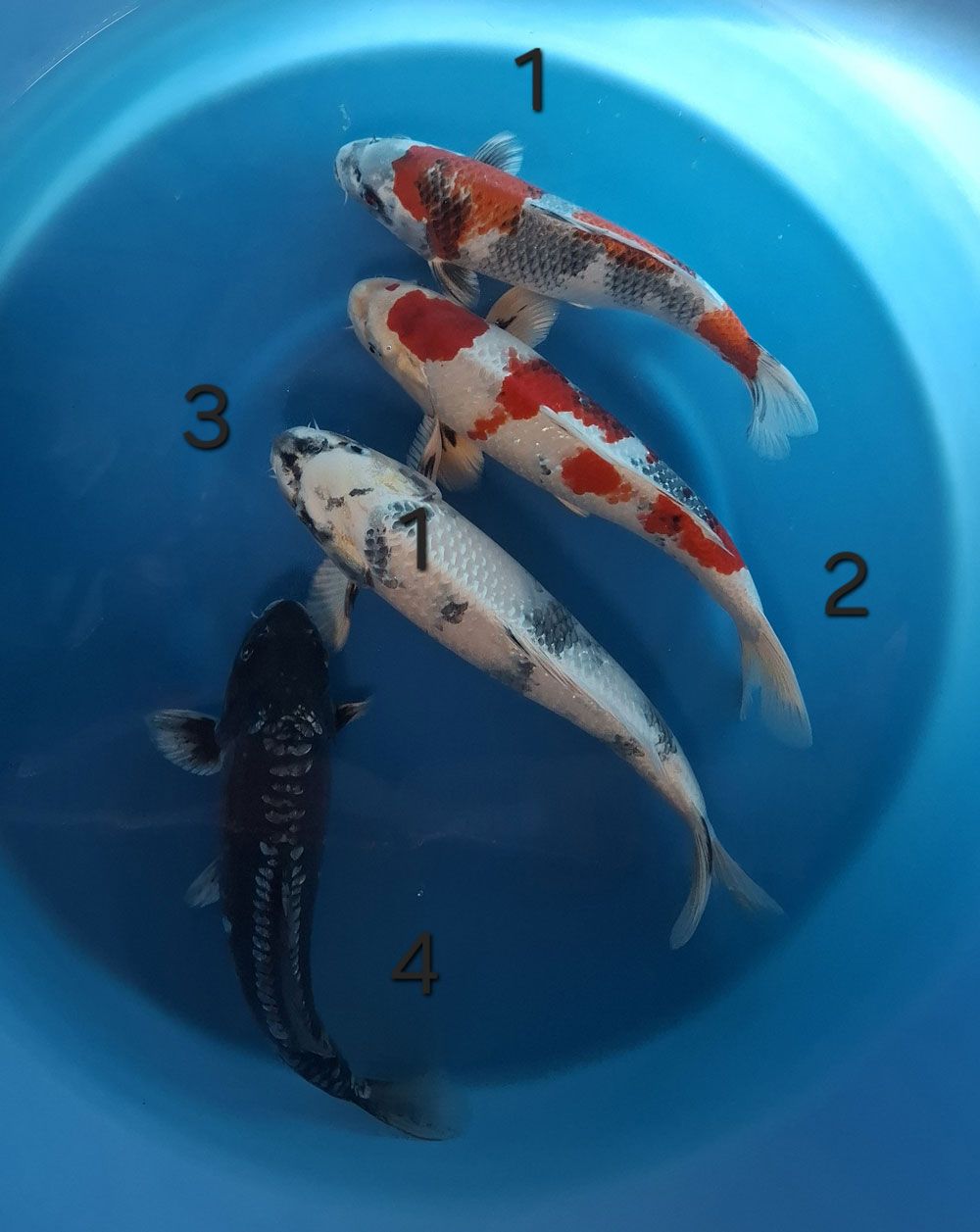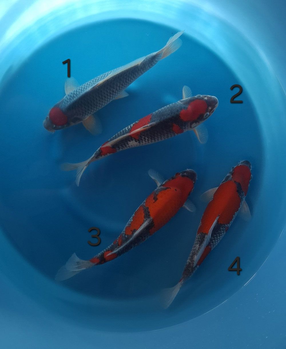 FOTO 63 - 1 BENIGOI; 2 BENI KUMONRYU; 3 GOSHIKI; 4 KIKUSUI - NISAI - 40/42 CM