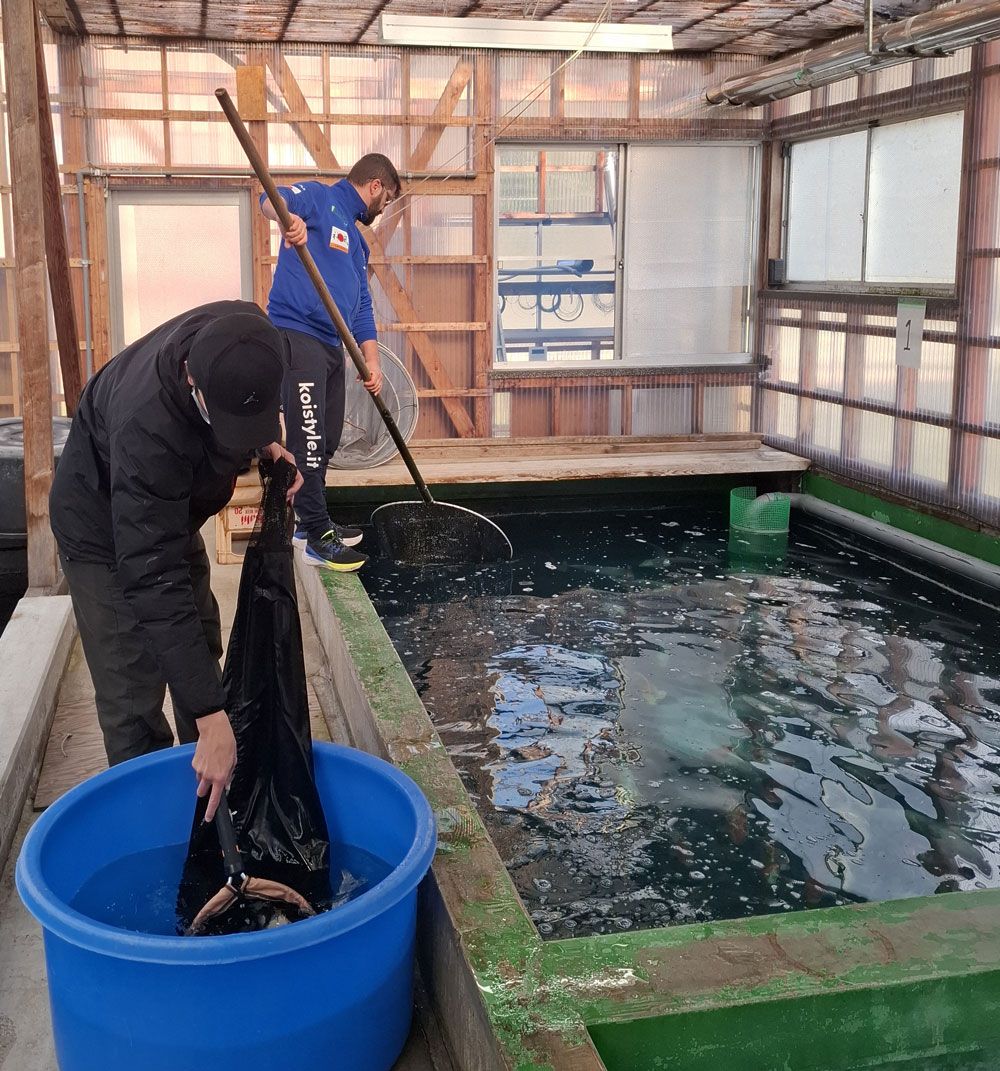 Una volta arrivati iniziamo subito a selezionare e riusciamo a completare dei box interessanti di Kohaku con un'ottima body e qualità di pelle e altre nisai estremamente interessanti.