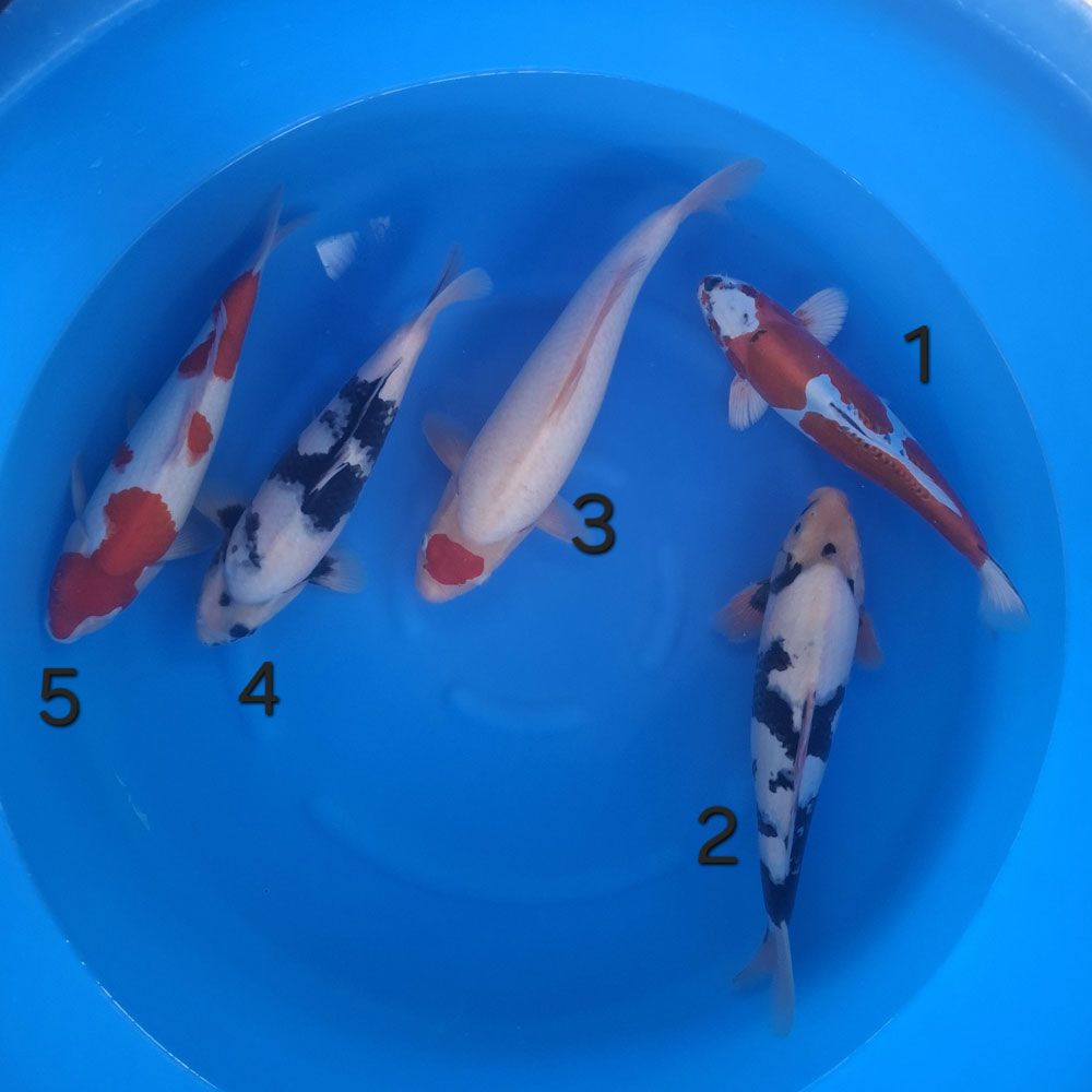 FOTO 65 - 1 BENI KIKOKURYU; 2 SHIRO UTSURI; 3 TANCHO KOHAKU; 4 SHIRO UTSURI; 5 KOHAKU - NISAI 31/44 CM