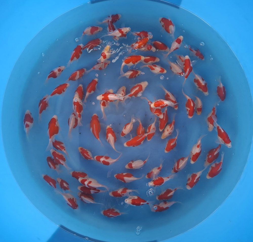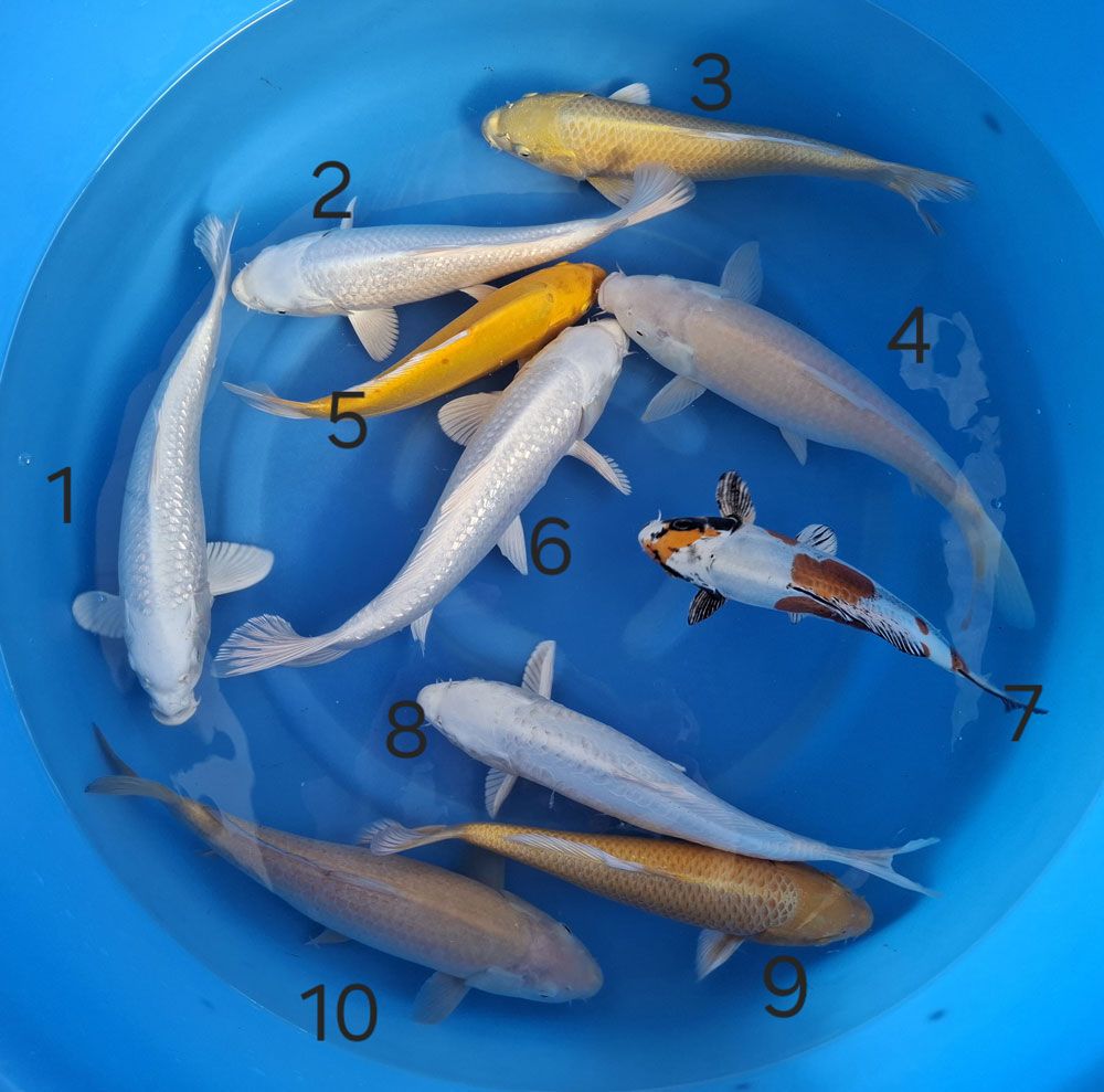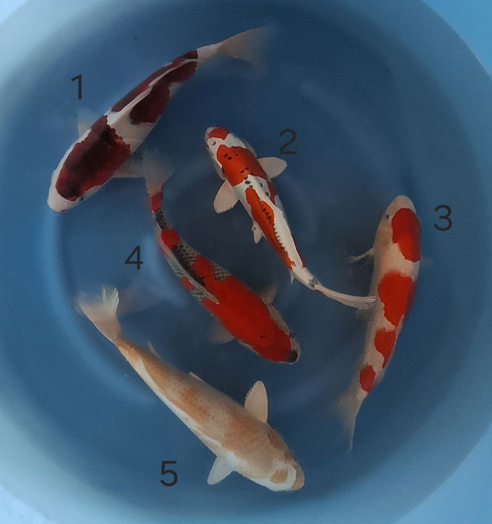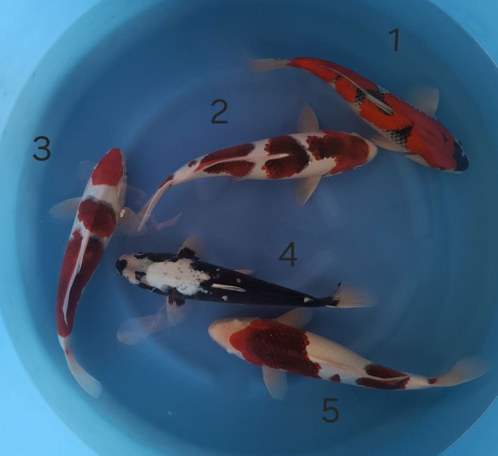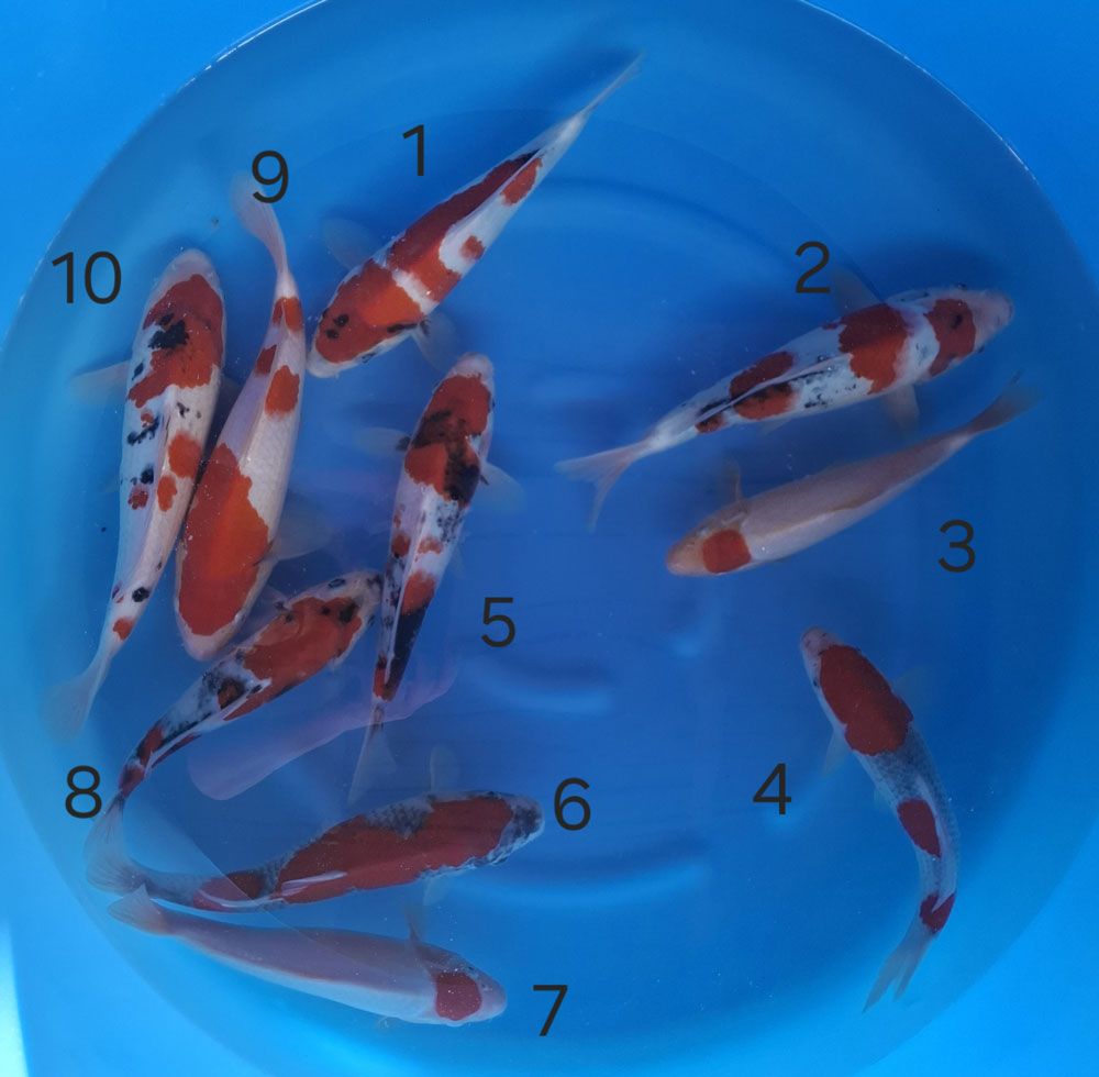 1 SHOWA - 2 SHOWA - 3 TANCHO KOHAKU -4 GOSHIKI - 5 SHOWA - 6 GOSHIKI - 7 TANCHO KOHAKU - 8 SHOWA - 9 KOHAKU - 10 SANKE 2 anni 30/35cm