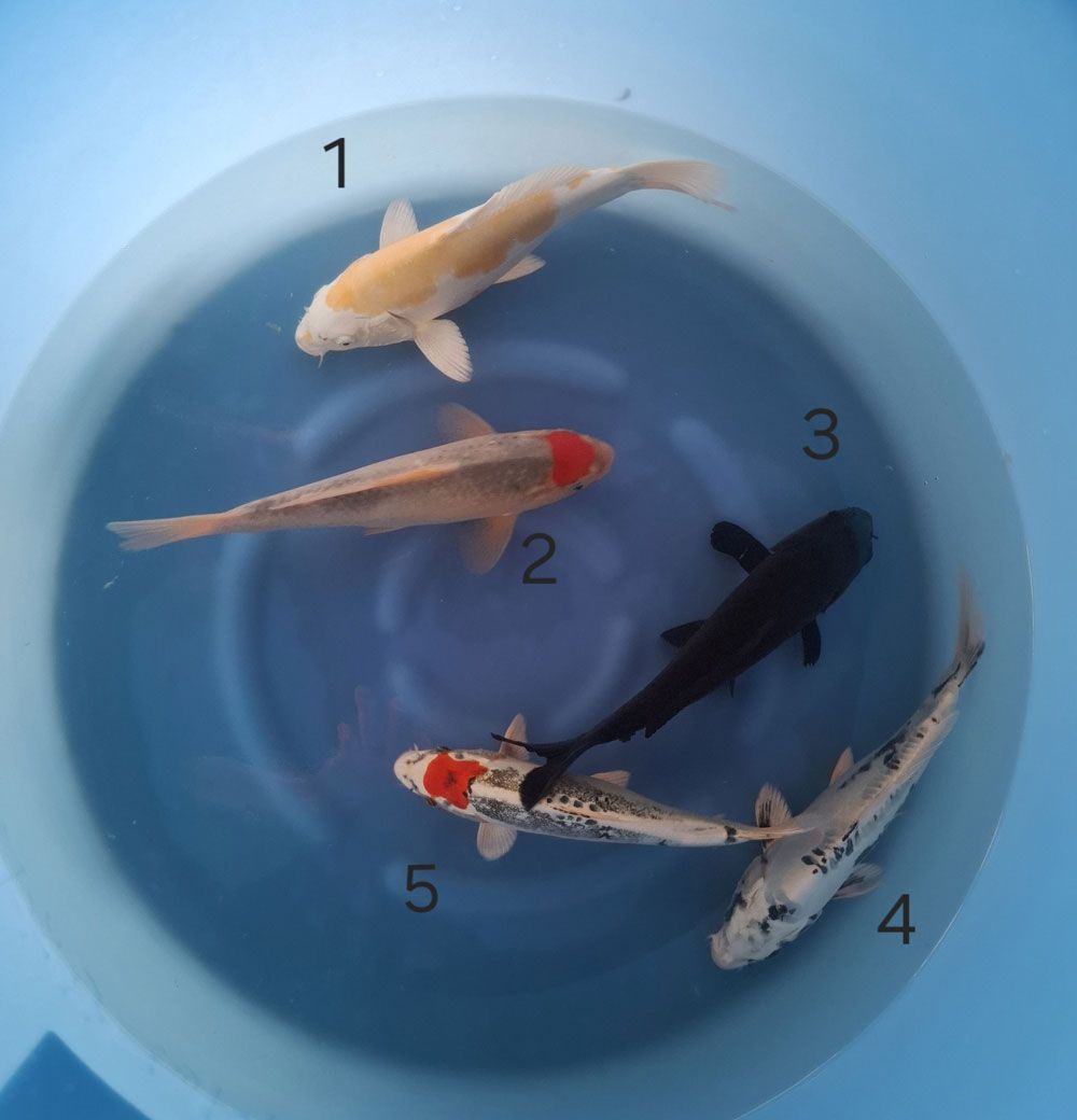Le koi selezionate sono bellissime. Qualità eccellente, pattern molto particolare, questo allevatore non ci delude mai!!!